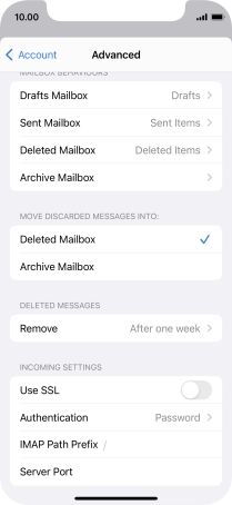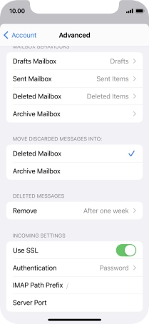 Press the required email account and follow the instructions on the screen to select settings for the specific account.