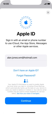 If you don t have an Apple ID, press Don't have an Apple ID? and follow the instructions on the screen to create an Apple ID.