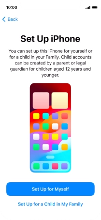 If your phone will be used by a child below the age of 13, follow the instructions on the screen to set up an Apple ID for the child.