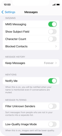 Press the indicator next to "MMS Messaging" to turn on the function.