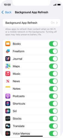 Select settings for background refresh of apps on your Apple iPhone 12 mini iOS 18