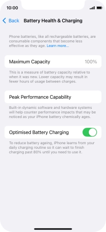 Press the indicator next to "Optimised Battery Charging" to turn the function on or off.