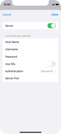 Press Password and key in the password for your email account. Please note that if you're using Vodafone's outgoing server, leave the password field empty.
