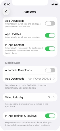 Press the indicator next to "Automatic Downloads" to turn the function on or off.