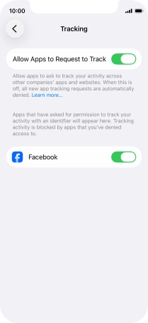 Press the indicator next to "Allow Apps to Request to Track" to turn the function on or off.