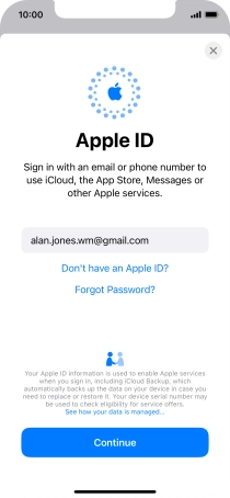 If you don t have an Apple ID, press Don't have an Apple ID? and follow the instructions on the screen to create an Apple ID.