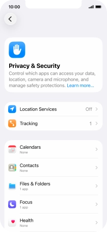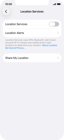 Press the indicator next to "Location Services" to turn the function on or off.