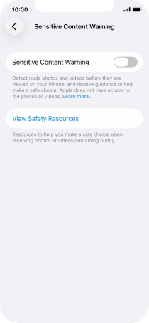 Press the indicator next to "Sensitive Content Warning" to turn the function on or off.