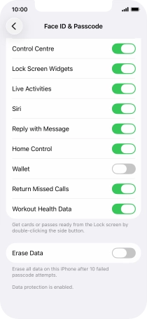 Press the indicator next to "Erase Data" to turn the function on or off.
