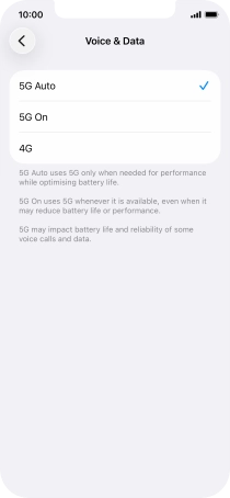 To turn on automatic switch between 5G and 4G, press 5G Auto.