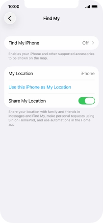 Select settings for Find My iPhone on your Apple iPhone 12 Pro iOS 26