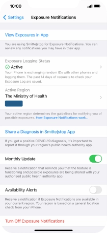 To turn on Exposure Notifications again, open the exposure app and follow the instructions on the screen to turn on the function.