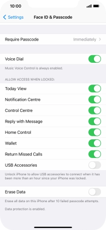 Press the indicator next to "Erase Data" to turn the function on or off.