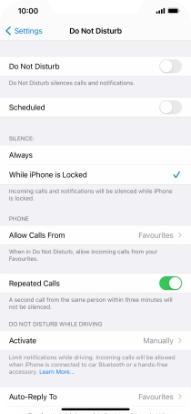 Press the required setting to select which contacts can call you even though Do Not Disturb is turned on.