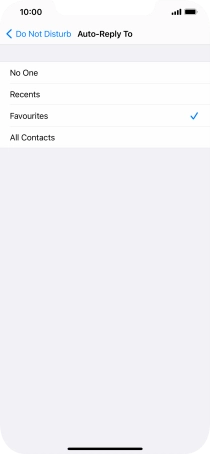 Press the required setting to select which contacts should automatically be notified that Do Not Disturb While Driving is turned on.