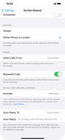 7. Select settings for Do Not Disturb While Driving