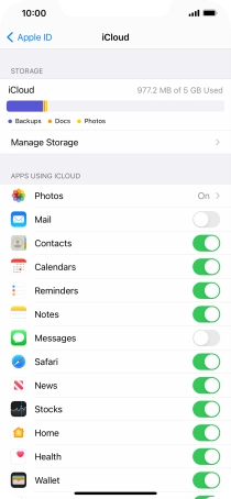 Press the indicator next to "iCloud Drive" to turn file synchronisation on or off.