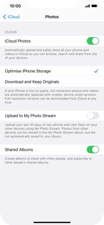 Press the indicator next to "Upload to My Photo Stream" to turn the function on or off.