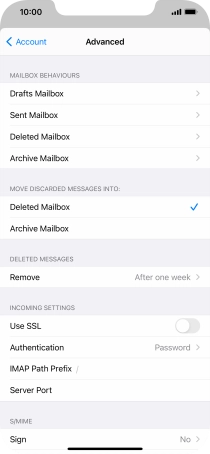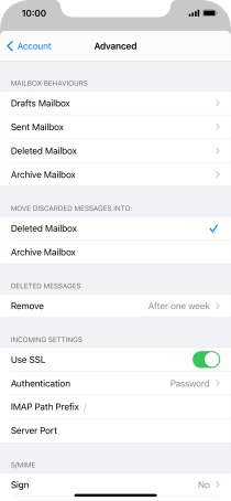 Press the required email account and follow the instructions on the screen to select settings for the specific account.