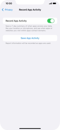 Press the required setting and follow the instructions on the screen to share or save the app activity report.