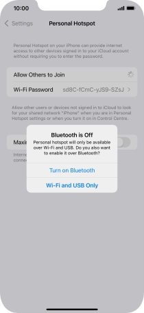 2. Key in the password for personal hotspot