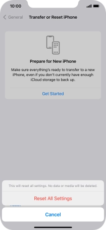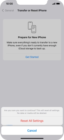 Press Reset All Settings. Wait a moment while the factory default settings are restored. Follow the instructions on the screen to set up your phone and prepare it for use.