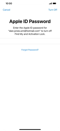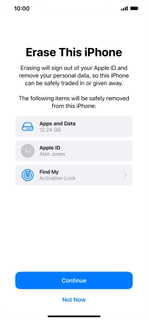 Key in the password for your Apple ID and press Erase iPhone. Wait a moment while the factory default settings are restored. Follow the instructions on the screen to set up your phone and prepare it for use.