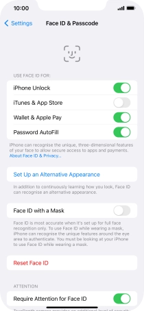 You can use your Face ID to turn off the phone lock code, allow access to apps and authorise payments.
