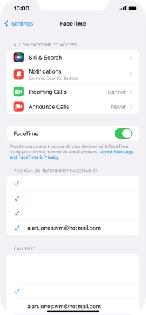 Press the required setting below "YOU CAN BE REACHED BY FACETIME AT".