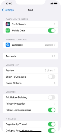 Press the required email account and follow the instructions on the screen to select settings for the specific account.