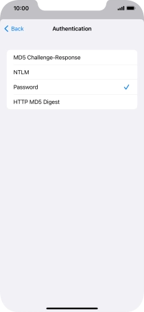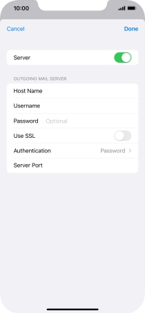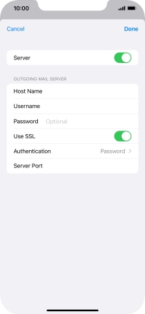 Press Password and key in the password for your email account. Please note that if you're using Vodafone's outgoing server, leave the password field empty.