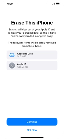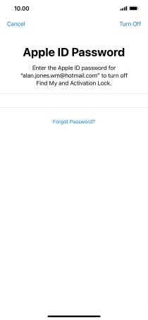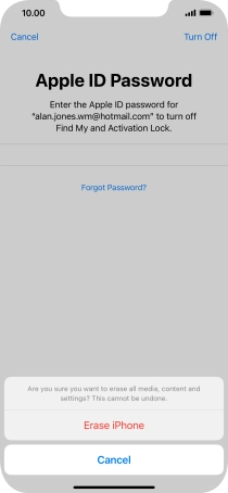 Key in the password for your Apple ID and press Erase iPhone. Wait a moment while the factory default settings are restored. Follow the instructions on the screen to set up your phone and prepare it for use.