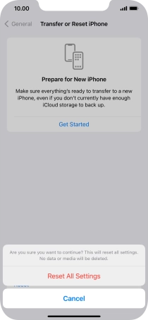 Press Reset All Settings. Wait a moment while the factory default settings are restored. Follow the instructions on the screen to set up your phone and prepare it for use.