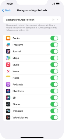 To turn off background refresh of apps, press Off.