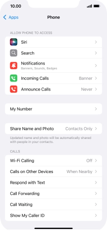 Press the indicator next to "Call Waiting" to turn the function on or off.