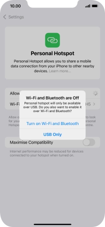 If Wi-Fi is turned on, press Wi-Fi and USB Only.