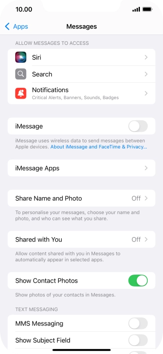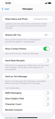 Press the indicator next to "Send as Text Message" to turn the function on or off.