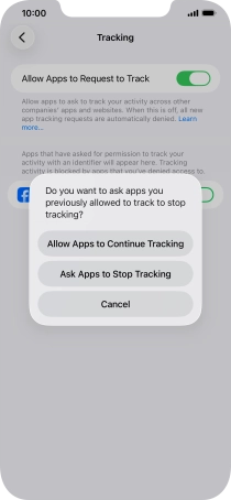 Press the indicator next to "Allow Apps to Request to Track" to turn the function on or off.