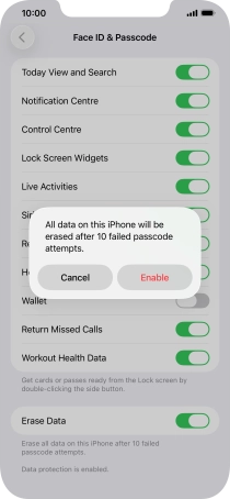 Press the indicator next to "Erase Data" to turn the function on or off.