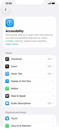 It is possible to select more accessibility settings, you can, e.g., turn the accessibility shortcut on or off, set up Guided Access and set up accessibility functions for certain apps.