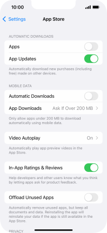 Press the indicator next to "Automatic Downloads" to turn the function on or off.