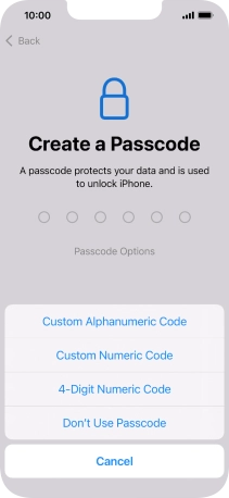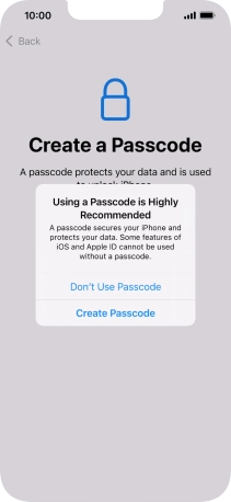 Follow the instructions on the screen to turn on use of phone lock code or press Don't Use Passcode.