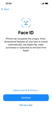 Follow the instructions on the screen to turn on use of Face ID or press Set Up Later.