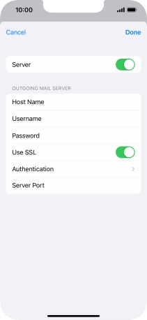 Press Host Name and key in the name or IP address of your email provider's outgoing server. Please note that if you can't send email messages when using your email provider's outgoing server, key in smtp.vodafone.net.au (Vodafone's outgoing server).