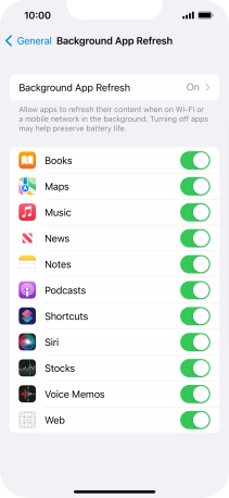 Select settings for background refresh of apps on your Apple iPhone 13 iOS 16.0