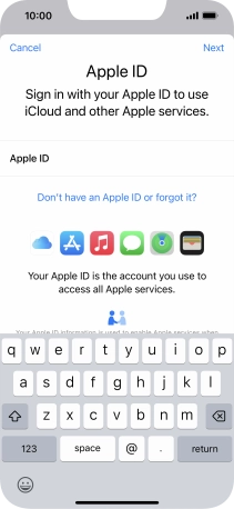 If you don t have an Apple ID, press Don't have an Apple ID or forgot it? and follow the instructions on the screen to create an Apple ID.