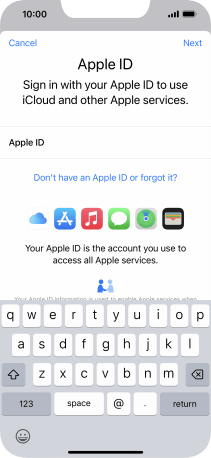 If you don t have an Apple ID, press Don't have an Apple ID or forgot it? and follow the instructions on the screen to create an Apple ID.