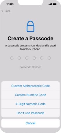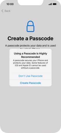 Follow the instructions on the screen to turn on use of phone lock code or press Don't Use Passcode.