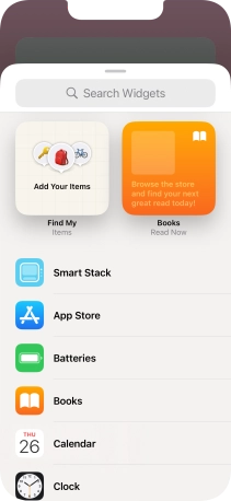 If the required widget is not displayed on the list, press the search field and follow the instructions on the screen to find the required widget.