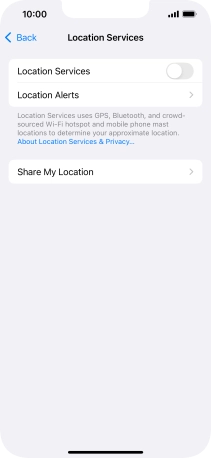 Press the indicator next to "Location Services" to turn the function on or off.
